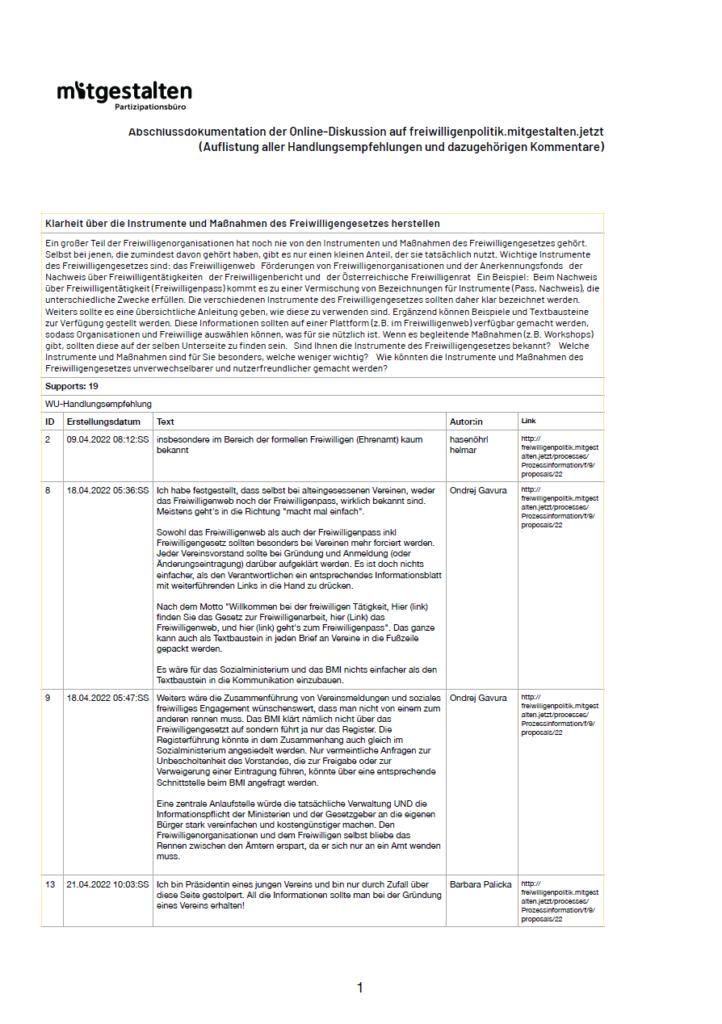 Im Auftrag des Sozialministeriums hat die IGO einen mehrstufigen Beteiligungsprozess durchgeführt in dem Freiwillige und deren Organisationen nach ihren Empfehlungen für ein neues Freiwilligengesetz gefragt wurden. Am vorläufigen Ende dieses Prozesses steht der Ergebnisbericht „Zivilgesellschaftliche Empfehlungen zur Novellierung des Freiwilligengesetzes“ mit einer Beschreibung des Prozesses und der Prioritäten der Teilnehmenden bei der Verbesserung des Freiwilligengesetzes.