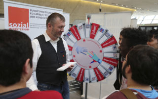 Das Sozialministerium war mit einem Stand bei dieser Messe vertreten. Bundesminister Alois Stöger hat die Messe eröffnen. Mit Hilfe eines Wissensrades wurden Kenntnisse über das freiwillige Engagement abgefragt und attraktive Anerkennungspreise vergeben.